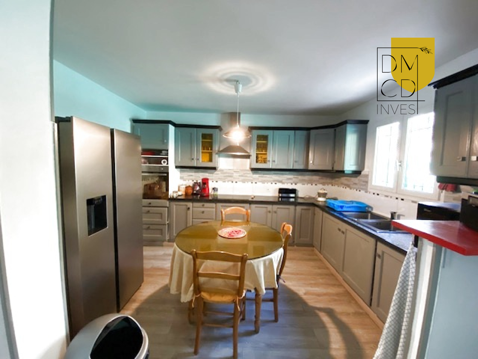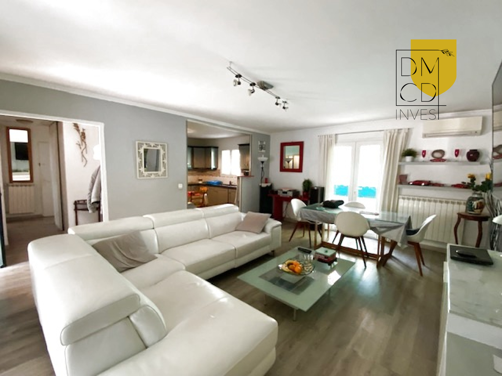 LES CAMOINS / VILLA + JARDIN PISCINE LA VALENTINE / ROUTES DES CAMOINS, Villa située entre la Valentine et les Camoins, sur un terrain de 500 m2 avec piscine. Non loin des commerces, cette Villa traversante de type 4 d'environ 95 m2 habitables est composée principalement : D'un hall d'entrée, d'un séjour avec une cuisine semi-ouverte entièrement équipée, de trois chambres avec placards (dont une avec salle d'eau et WC), d'une salle d'eau, des WC séparés. Doubles vitrages, climatisation réversible, chauffage au gaz, stores électriques, tout à l'égout, belles prestations. À l'extérieur, un jardin exposé plein sud comprends notamment : - Une terrasse couverte avec barbecue, une piscine en dur 6x3m, deux abris de rangement. - Un parking couvert pour deux véhicules Taxe foncière : 1445€ Prix : 525.000€
