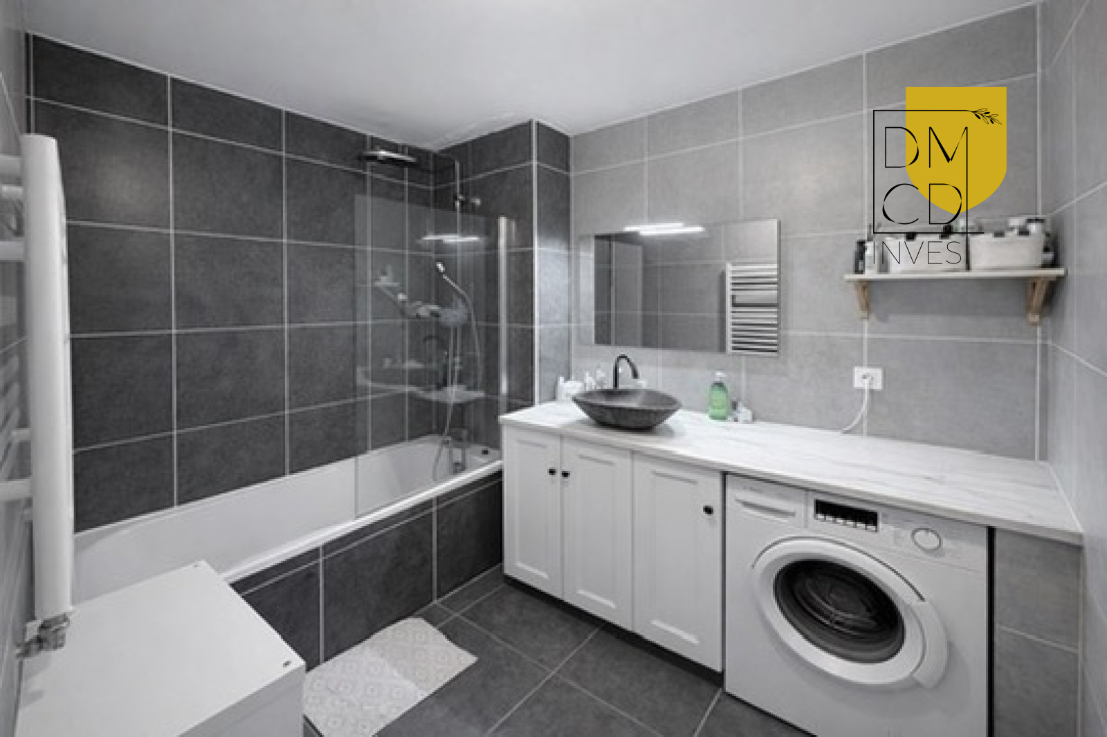 - d’une salle de bains avec baignoire,