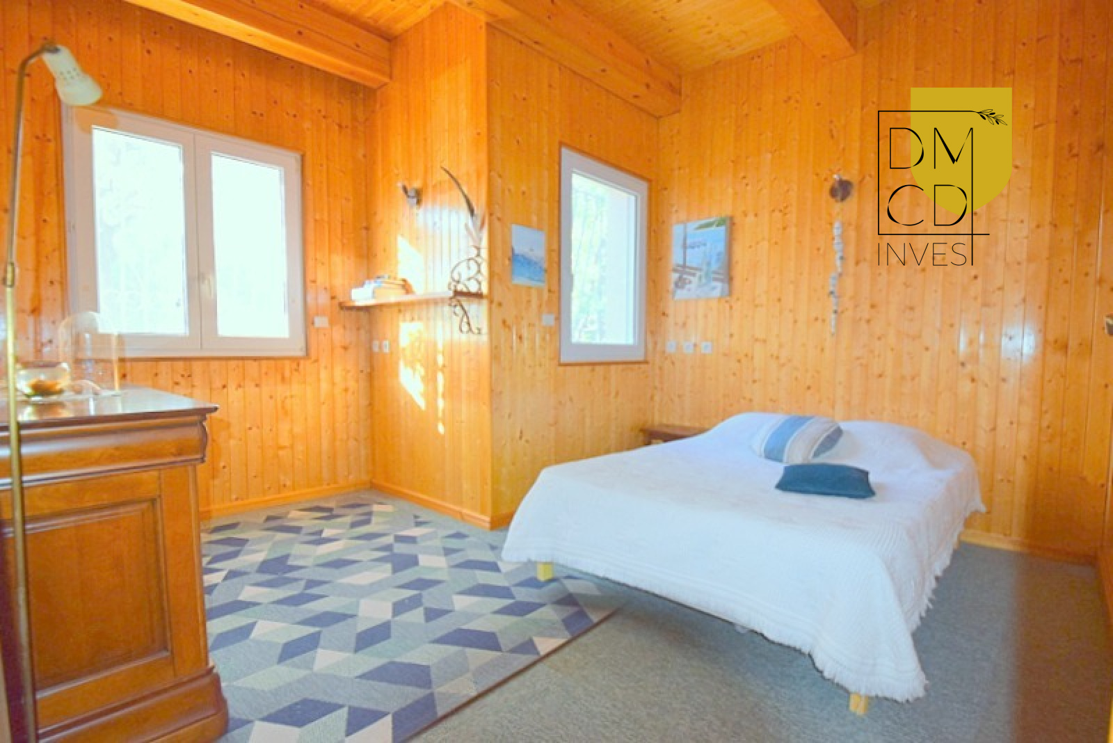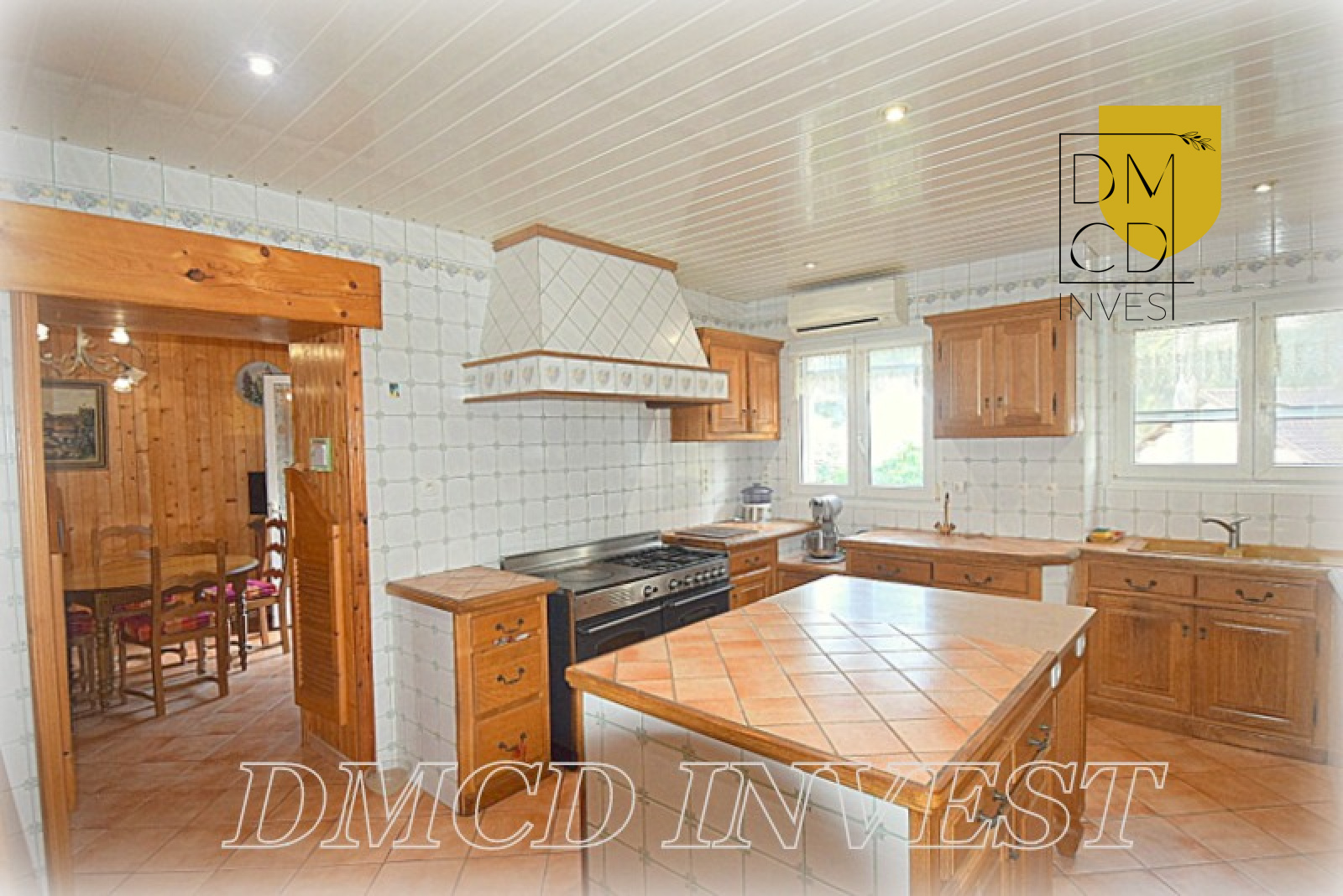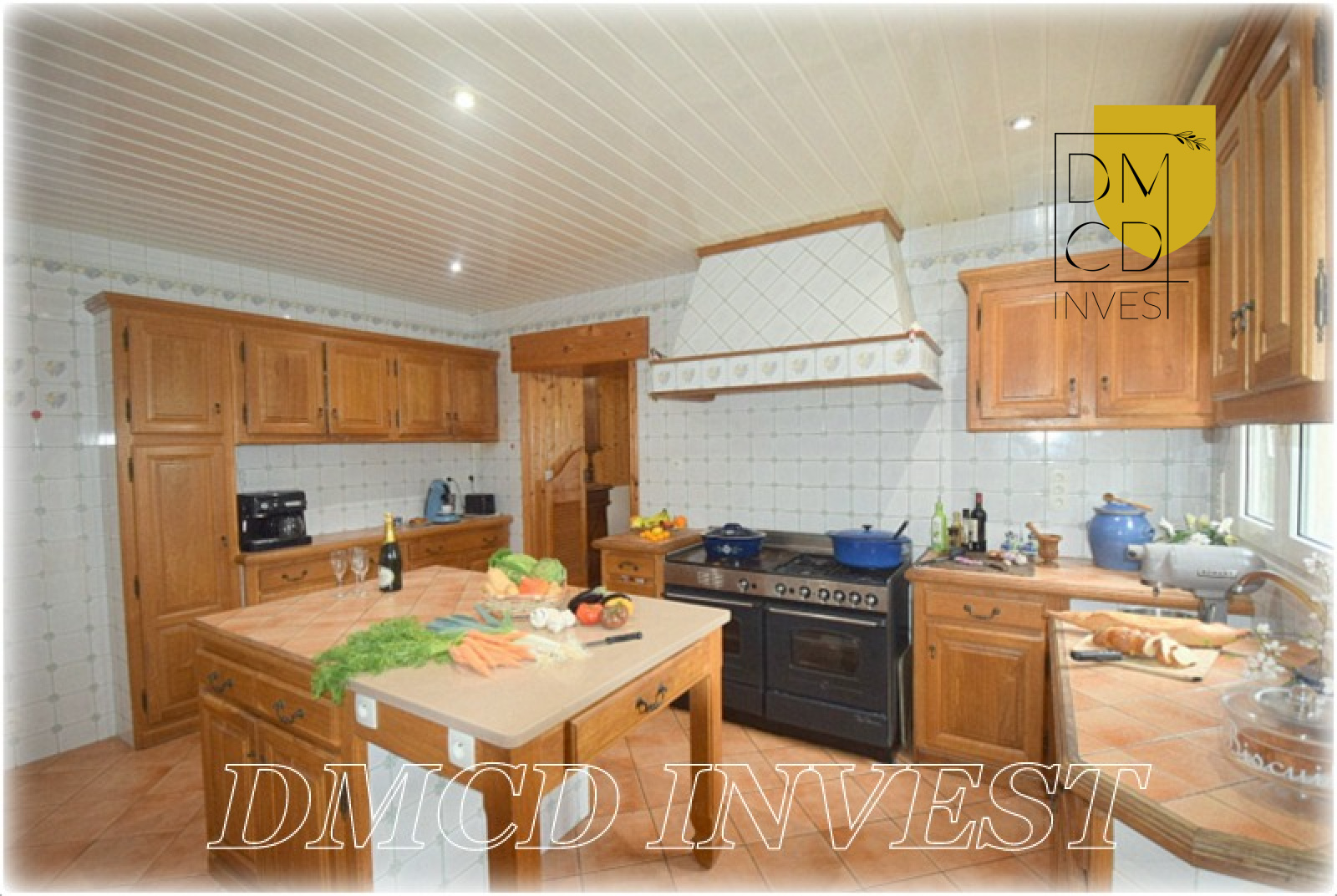 Vous aimez cuisiner ? Vous serez conquis par la spacieuse cuisine avec îlot central, sa grande buanderie attenante et sa salle de repas chaleureuse habillée de bois, avec cheminée-barbecue intérieur.