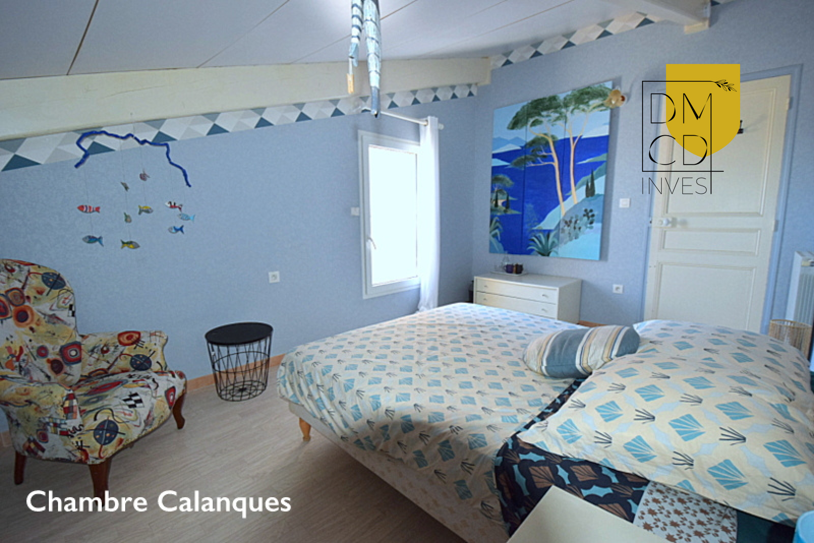 A l'étage, un dégagement distribue 4 chambres, une salle d'eau, des toilettes et une terrasse de 90 m2 avec vue mer.
