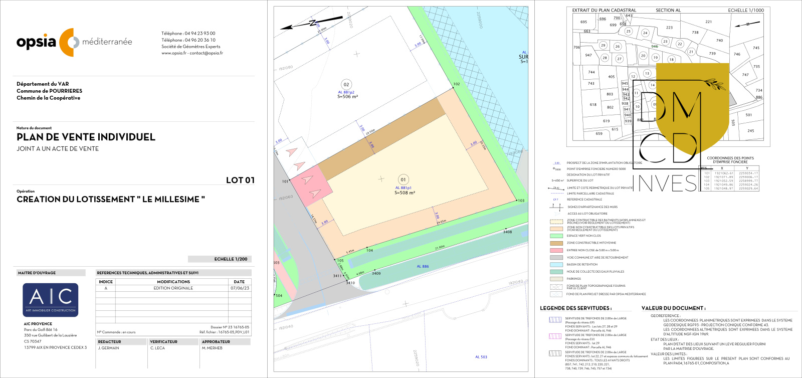 Le permis d'aménager prévoit la réalisation de 25 lots d'une superficie de 500 m² environ pour la libre construction de maisons individuelles de 141 à 150 m² avec possibilité piscine.